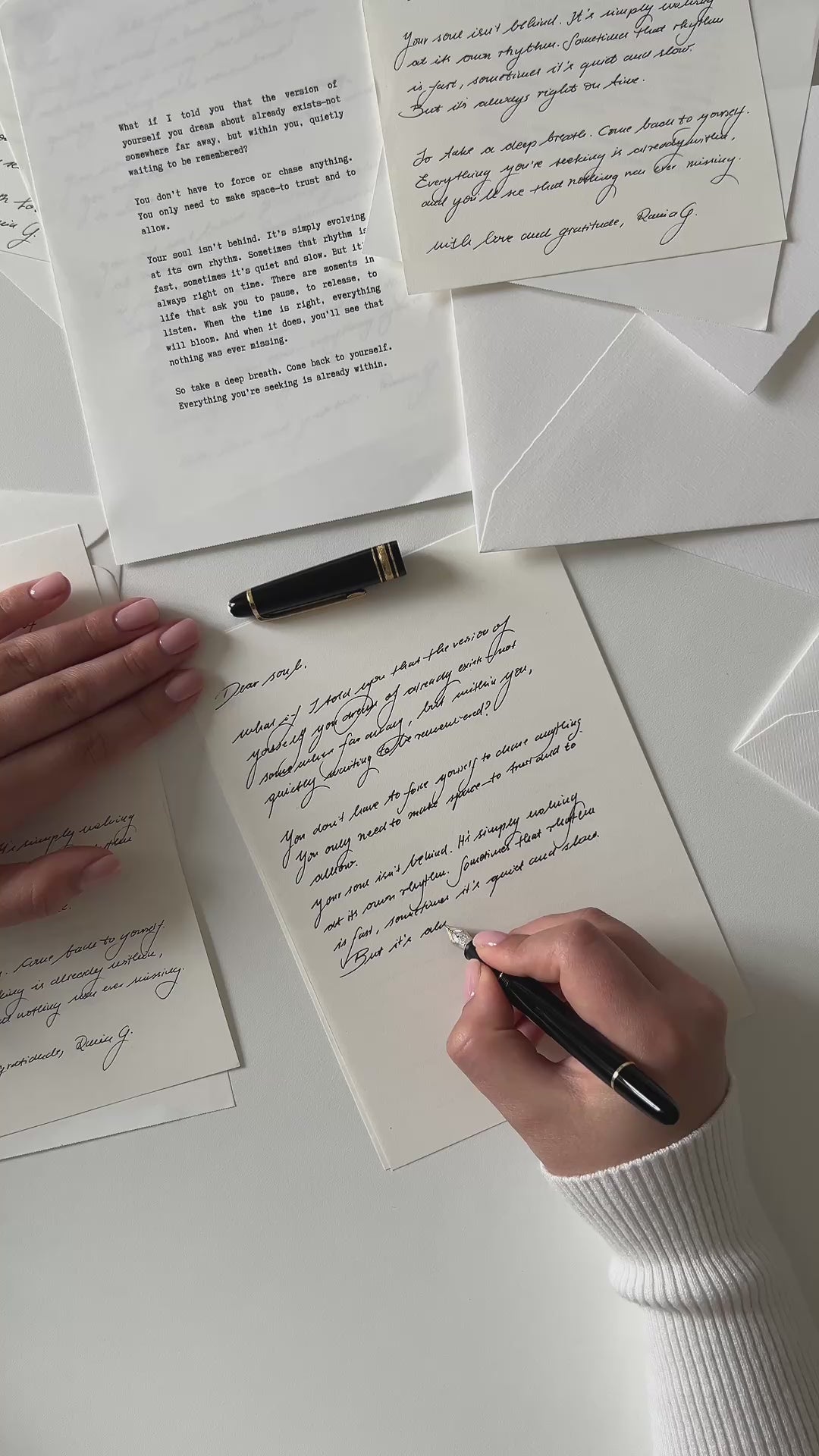 Four times a year – once every season – I’ll send you an original handwritten letter in timeless cursive, written on vintage-style paper – with the Montblanc Meisterstück and Montblanc ink, sealed with a classic wax seal, carefully placed in a beautiful envelope – a piece of art, sent with intention.